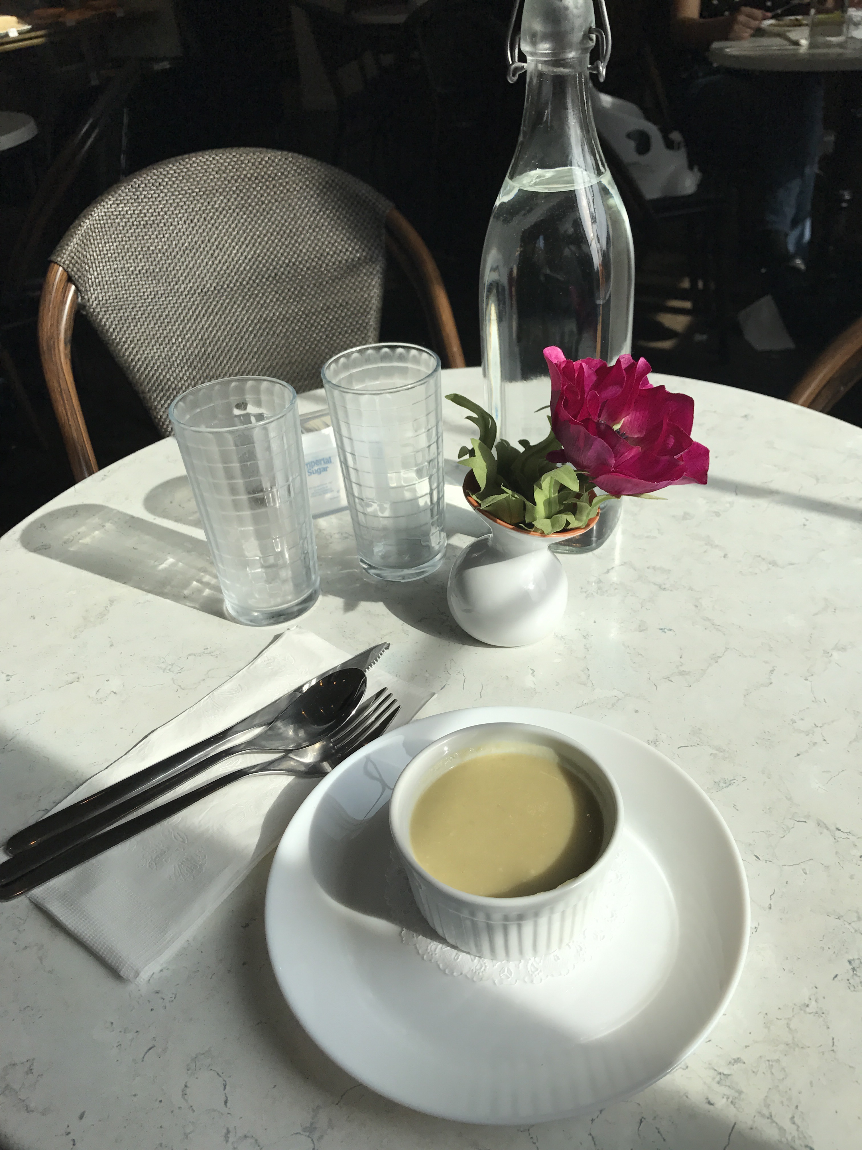 Lucky us, around the corner we found a frnch café. The owner herself toon our order, which she did in a very thick french accent. The soup was potato leek, and the quiche goat cheese and spinach.
