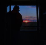 Beautiful sunset I captured, this man on the train was also watching it.