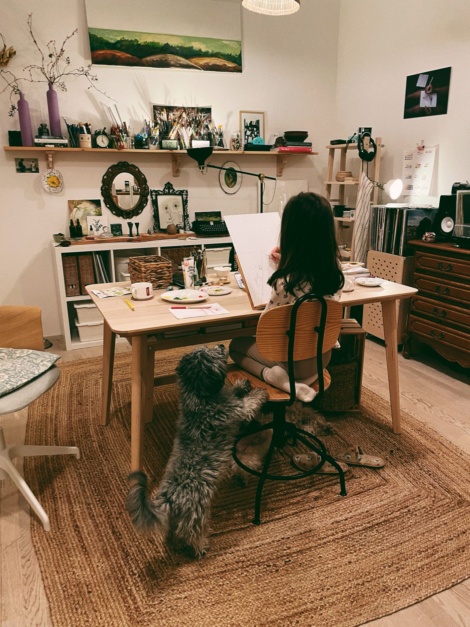 Flori and I first met in the botanical garden. As some of you may know I have a golden havamalt, Daisy. Flori has two havamalts as well: Lupi and Nero. The two pups are Daisy’s best friends. I have never seen her as excited, happy, or playful with other dogs. Thus began a few intentional meetings or accidental run-ins in the city with the dogs. The more we got to know each other, I discovered a fellow artist!